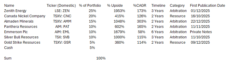 My portfolio is split into two sections - Arbitrations and Resource Investing. Whether a coincidence or not, as a class, junior miners find themselves disproportionately present in international arbitrations relative to other industries. This could be due to the capex heavy nature of junior mining operations making the managers of those business more incentivised to seek compensation than a toll-booth business (for example).
